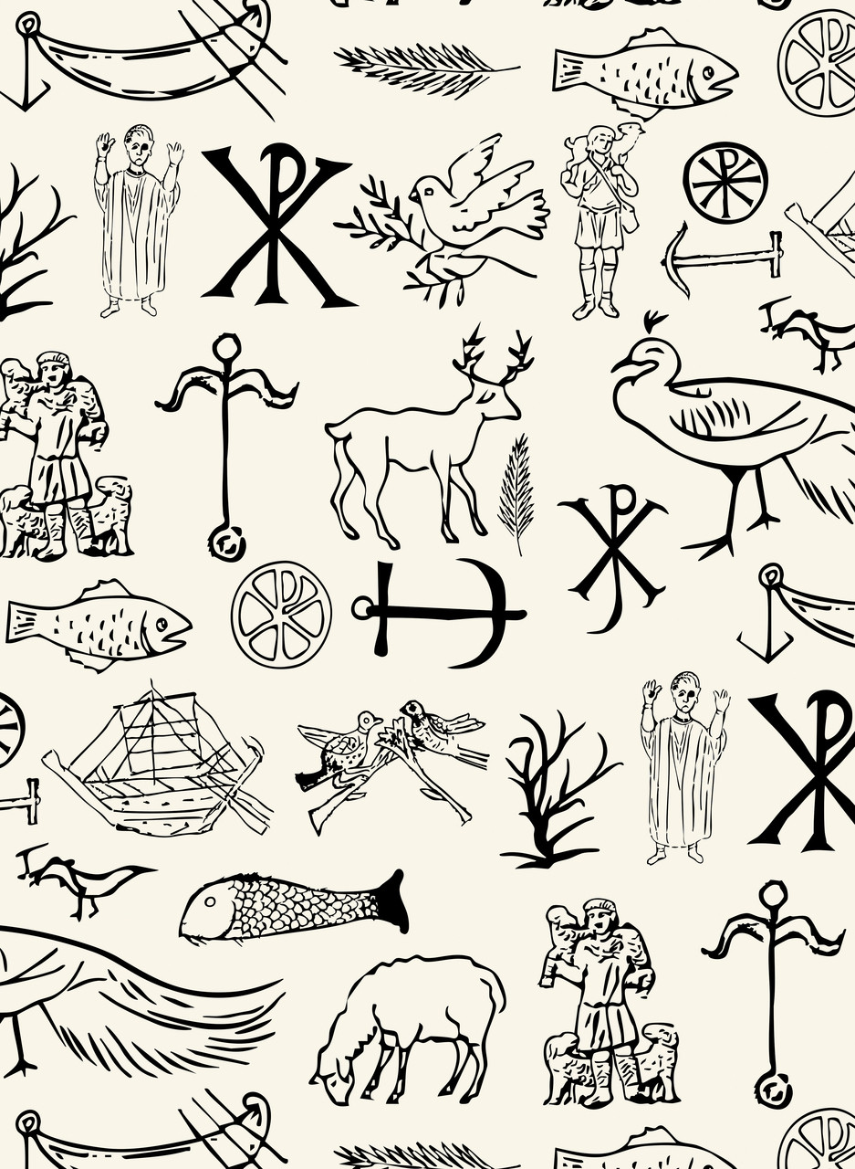 Fish, anchors, doves, vines carved into stone by hands that knew persecution firsthand.