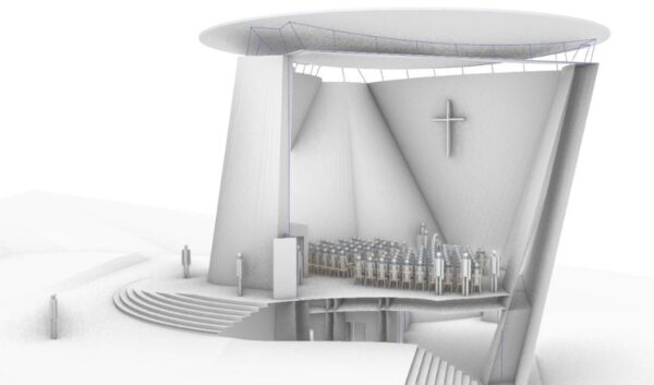 Award winning architect Zdenek Franek, who previously designed churches for the Church of the Brethren at Litomysl and Cernosice, created the main design. Three dimensional architectural designs represent an innovation in the Czech Republic, with image generation from artificial intelligence offering unlimited design possibilities according to Macuda.
