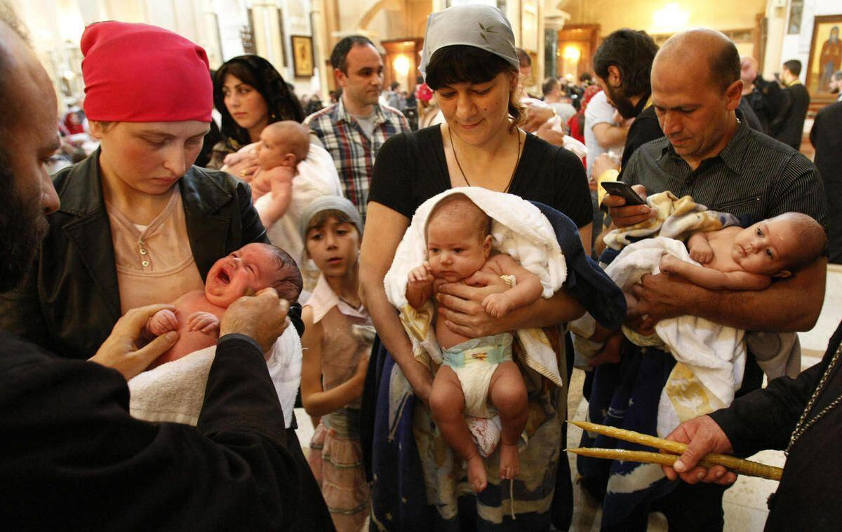 The Georgian Orthodox Church baptizes 700 children at once.