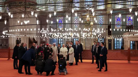 Pope Leo XIV visited the Sultan Ahmed Mosque, known as the "Blue Mosque," in Istanbul today as a gesture of respect and fraternity with the Muslim world during his historic six day visit to Turkey and Lebanon.
