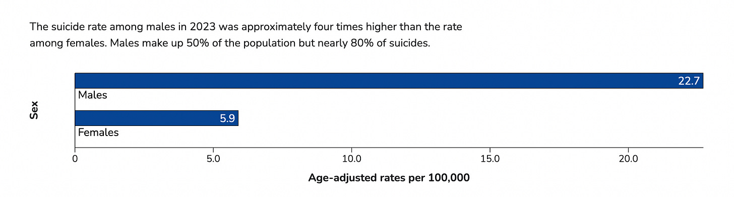 The stats prove it. Male suicide is rampant, boys are doing worse in school and college, depression in men has increased significantly and addiction is killing the souls of millions.